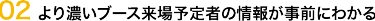 これにより事前にアプローチできていない層への製品PRが可能となり、貴社ブースの認知度アップと指名来場者の増加が実現できます。